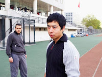 在我的学校我们有足球竞技我们外国人踢得不错。